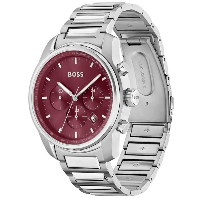 Hugo Boss Trace Herrklocka 44 mm med Silverfärgat Stålarmband och Röd Urtavla