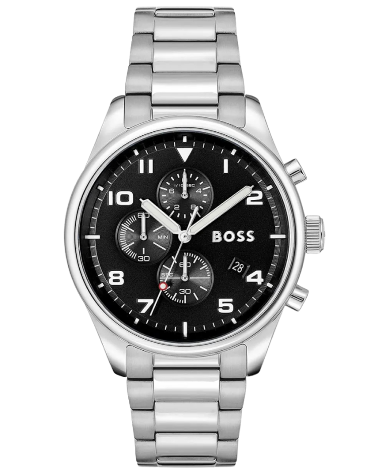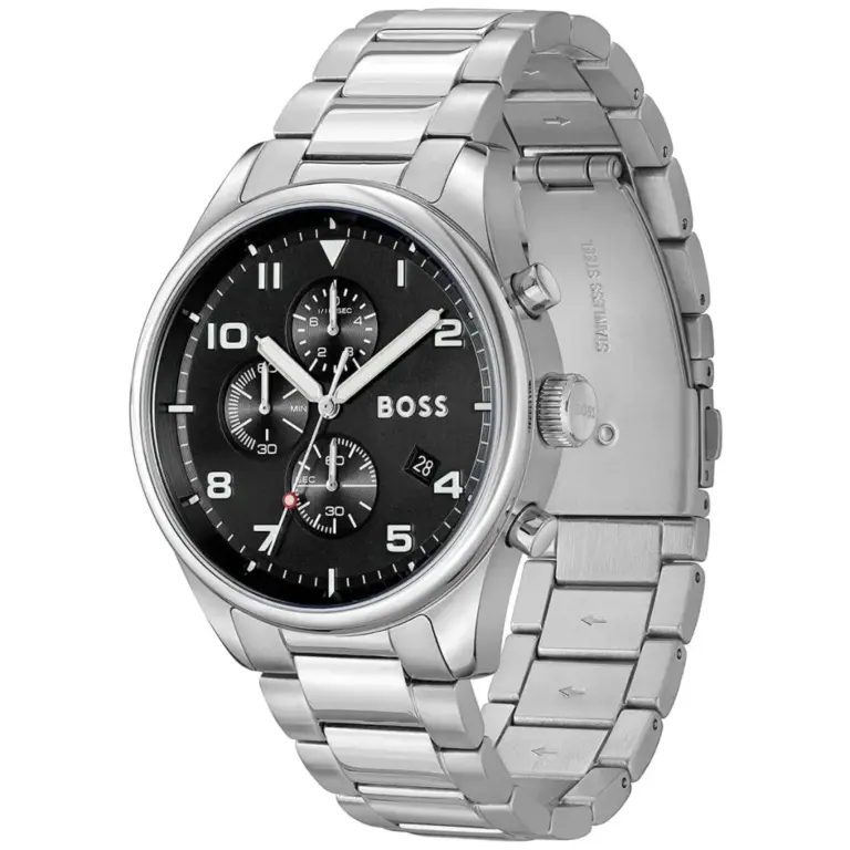 Hugo Boss View Herrklocka 44 mm med svart urtavla och silverfärgat armband