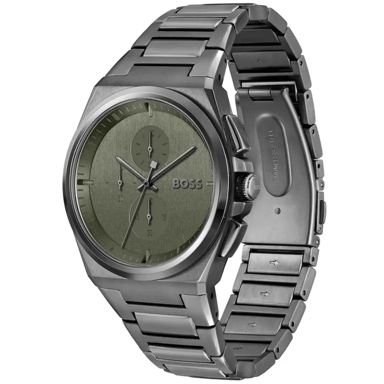 Hugo Boss Steer Herrklocka med grön urtavla och grått armband i rostfritt stål