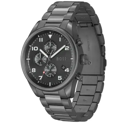 Det ursprungliga priset var: 7 695 kr.6 600 krDet nuvarande priset är: 6 600 kr.Hugo Boss Aeroliner Herrklocka 44 mm med Silverfärgat Stålarmband