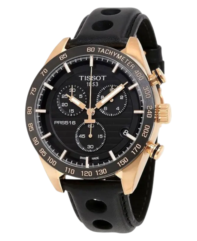 Tissot PRS 516 Chronograph Svart/Roséguld Läder 42 mm