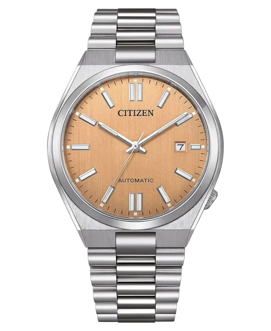 Citizen Tsuyosa Automatisk Orange/Silver 40 mm. Rostfritt stål boett och armband, 40 mm diameter, 11.7 mm tjocklek, orange urtavla med självlysande markeringar, safirglas, 5 ATM vattenskydd och datumvisning.