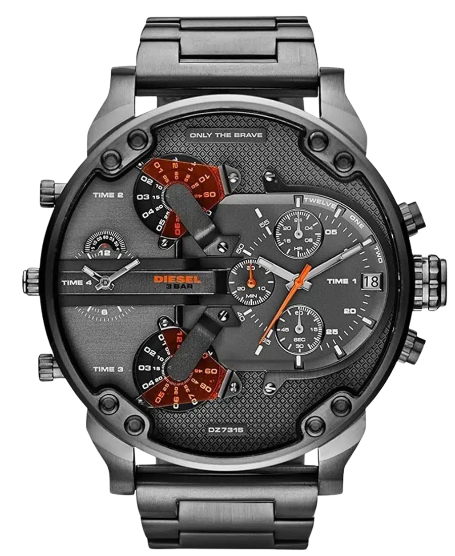 Diesel Mr. Daddy 2.0 DZ7315 är en kraftfull herrklocka med multifunktionell urtavla, kronograf och datumvisning, designad för en djärv och sportig look.