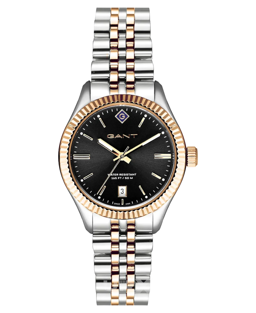 GANT Sussex Svart/Stål 34 mm — GANT Sussex Damklocka — Svart urtavla och Bicolor armband — 50 m / 5 ATM — Glas: Mineral — Boett: Stål