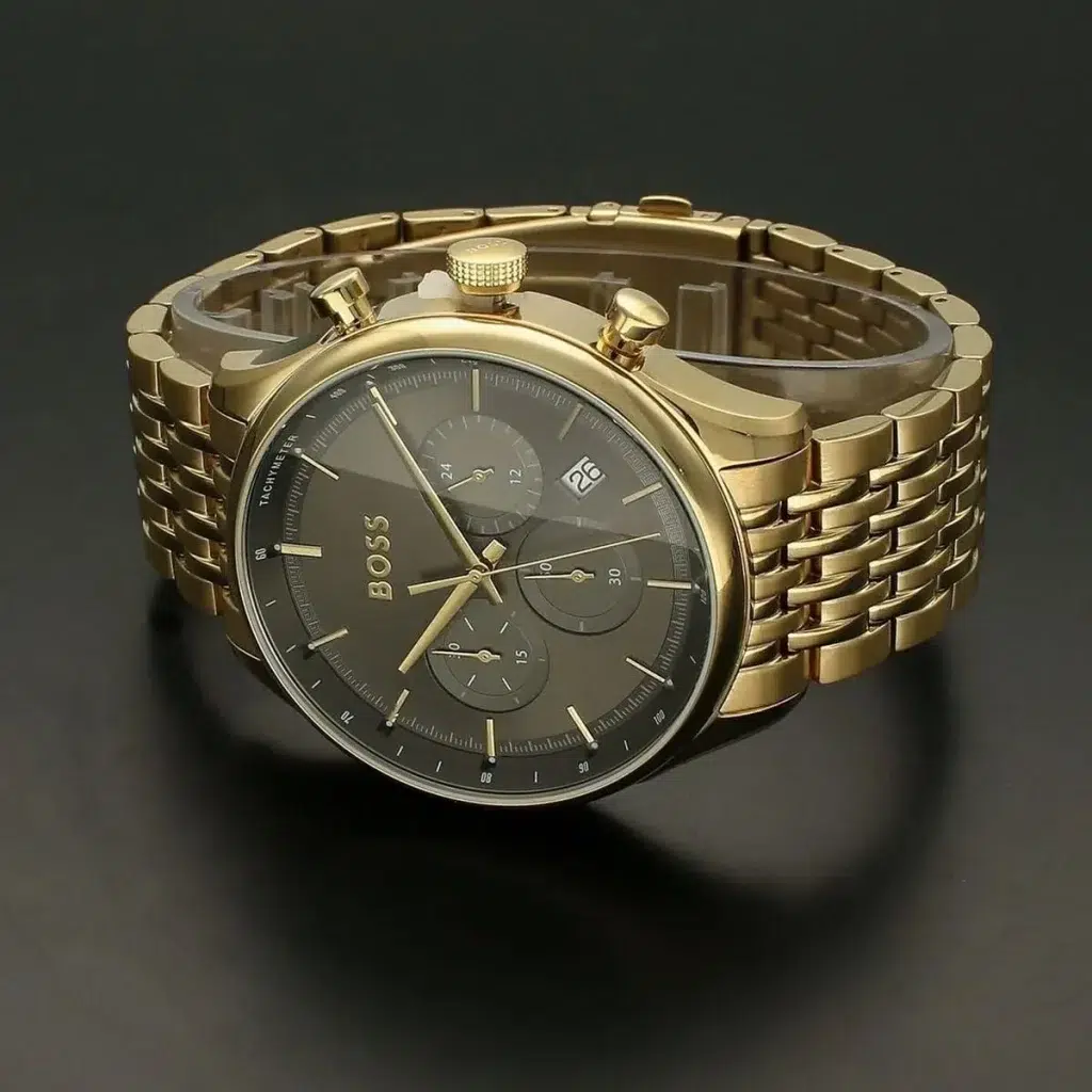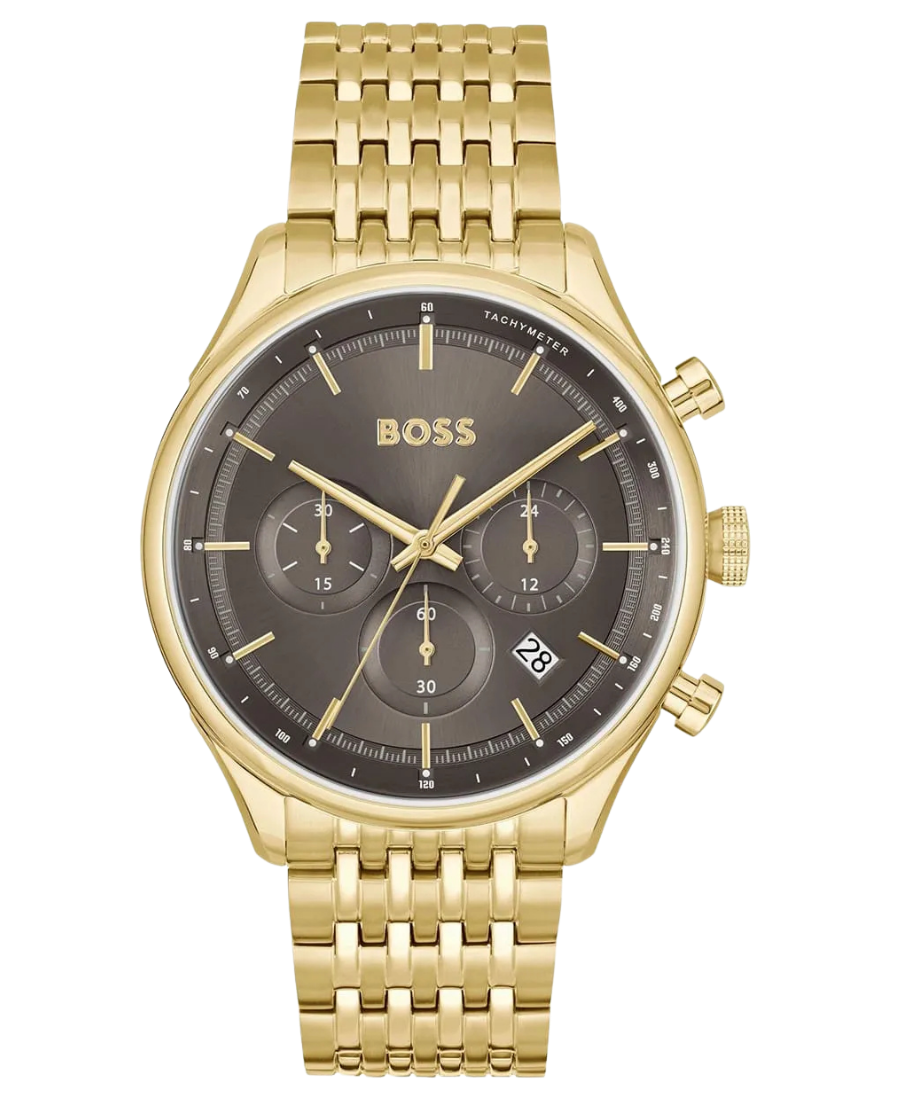 Hugo Boss Gregor 1514051 är en sportig och elegant herrklocka med grå urtavla och guldfärgat stålarmband, perfekt för både vardag och formella tillfällen.