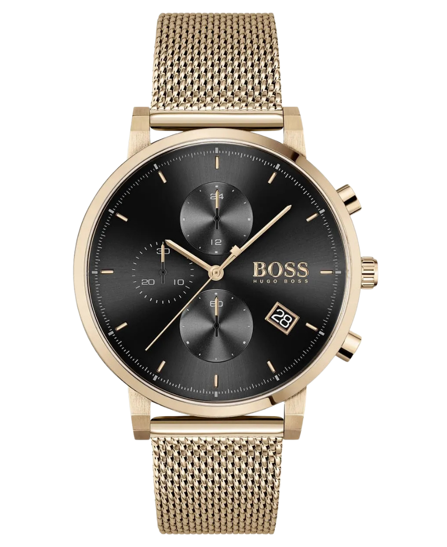 Hugo Boss Integrity 1513808 är en elegant och modern herrklocka med svart urtavla och roséguldfärgat mesh-armband, perfekt för både vardag och formella tillfällen.