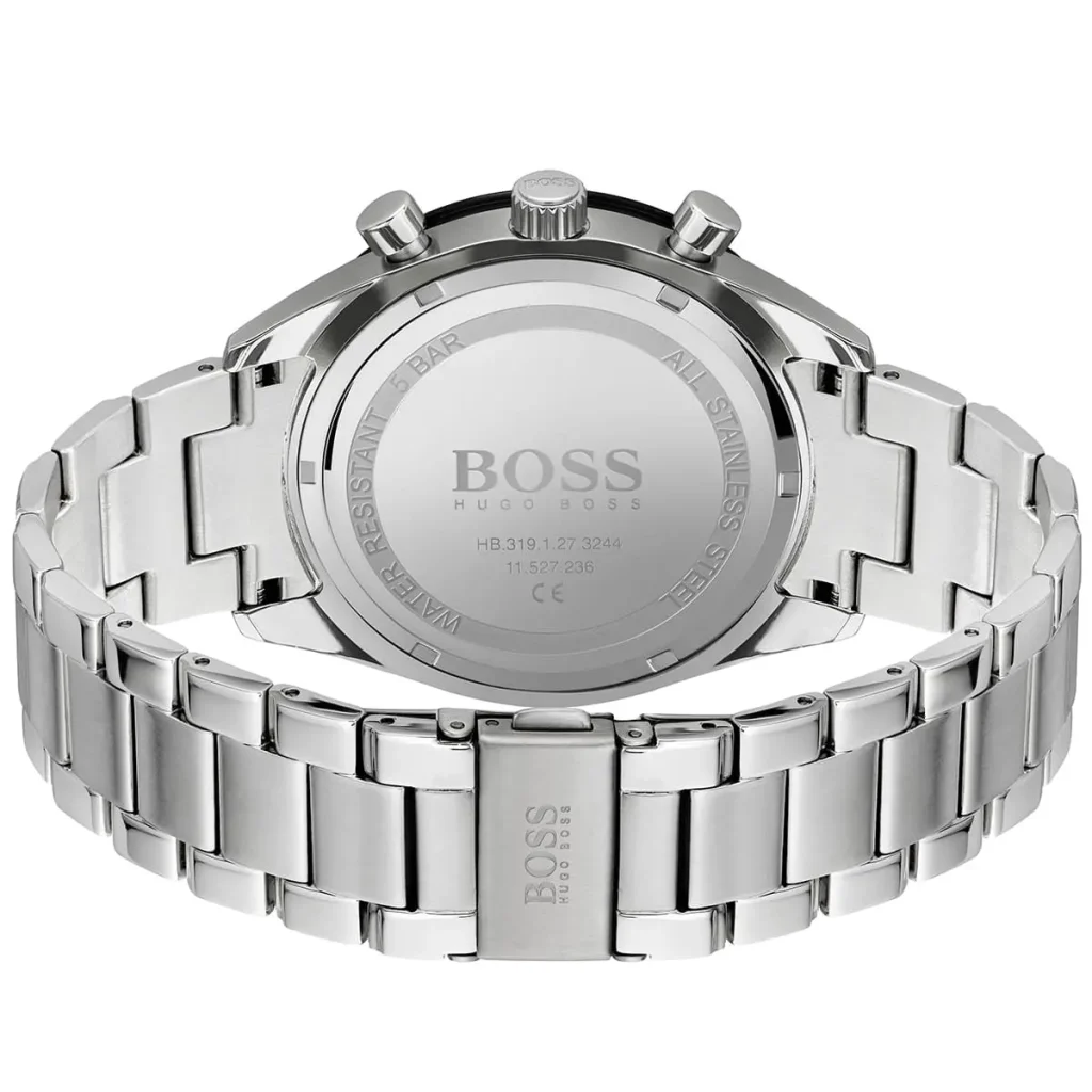 Hugo Boss Santiago 1513862 är en sportig och elegant herrklocka med svart urtavla och silverfärgat stålarmband, perfekt för både vardag och formella tillfällen.