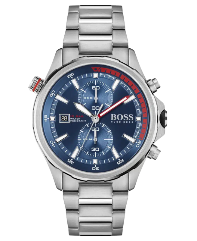 Hugo Boss Chronograph Herrklocka med svart urtavla och silverfärgat armband i rostfritt stål