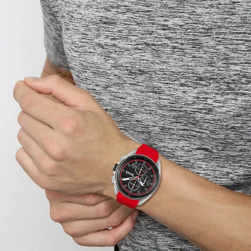 Hugo Boss Volane Herrklocka 44 mm med Rött Gummiarmband