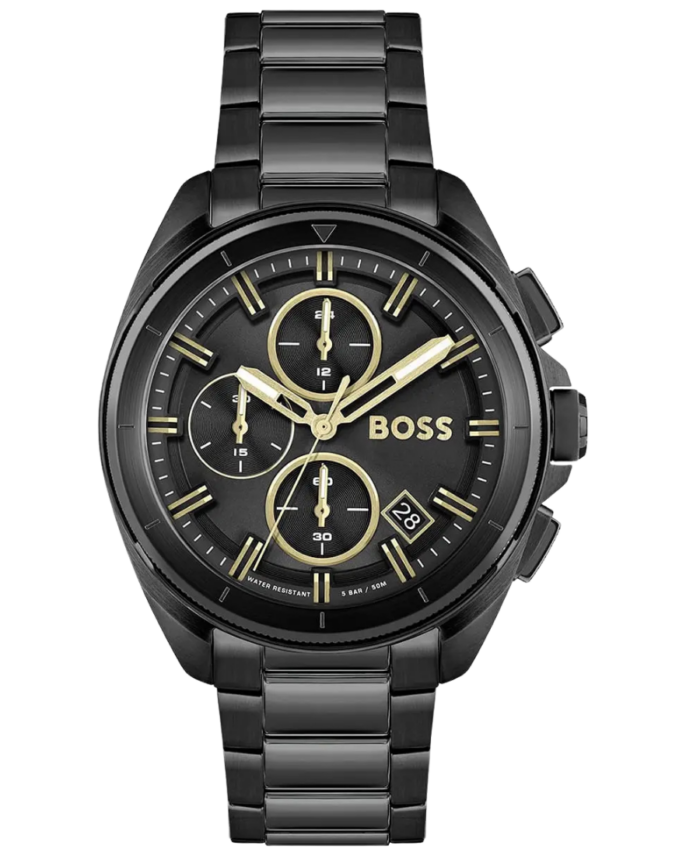 Hugo Boss Volane 1513950 är en elegant herrklocka med svart urtavla, kronograf‑funktion och svart armband i rostfritt stål, perfekt för både vardag och formella tillfällen.