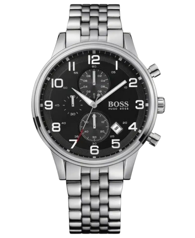 Hugo Boss Chronograph Herrklocka med svart urtavla och silverfärgat armband i rostfritt stål