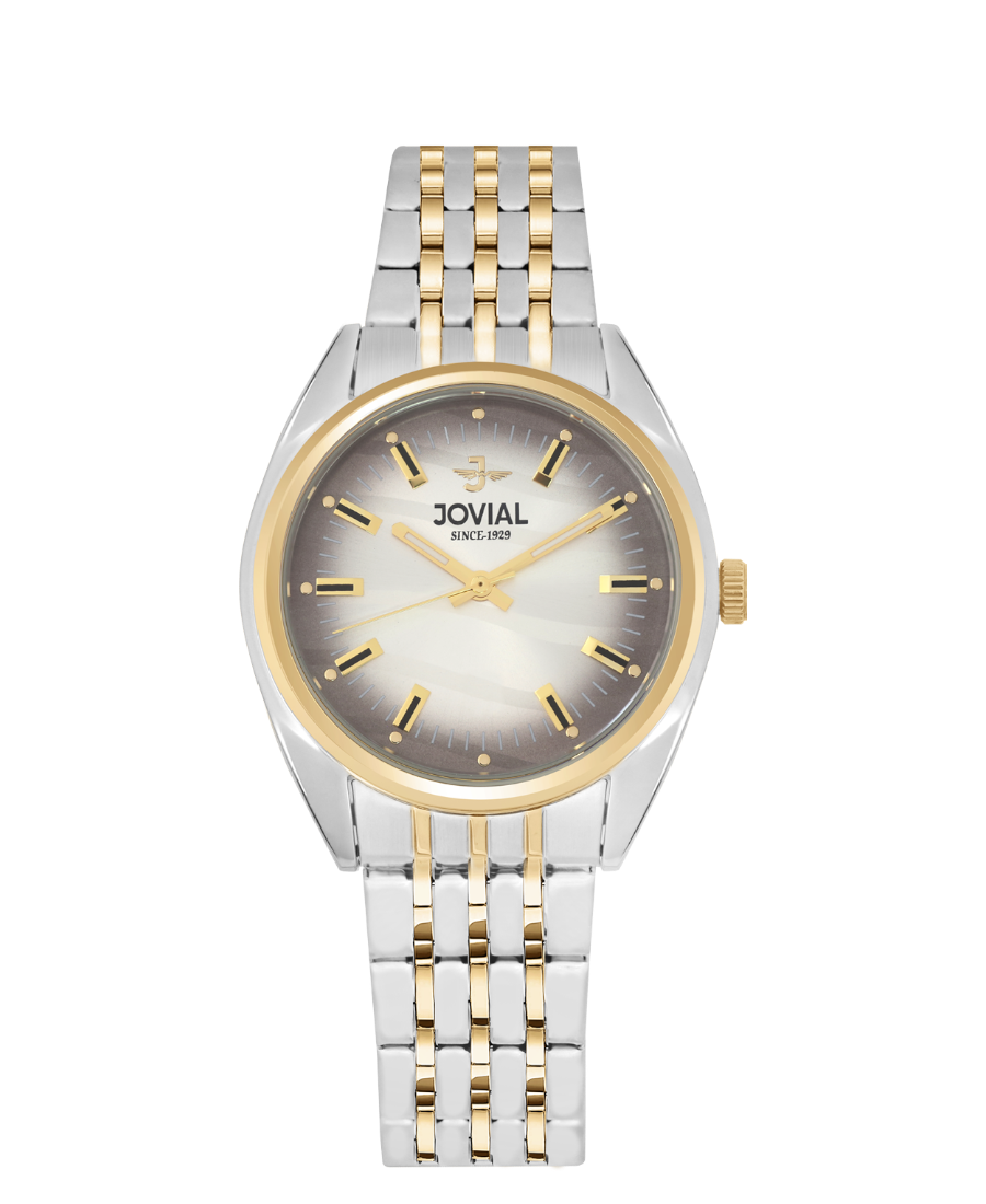Jovial Beige/Stål 26 mm — Jovial Damklocka — Beige urtavla — 30 meter / 3 ATM — Glas: Hardlex Mineralkristall — Boett: 316L rostfritt stål