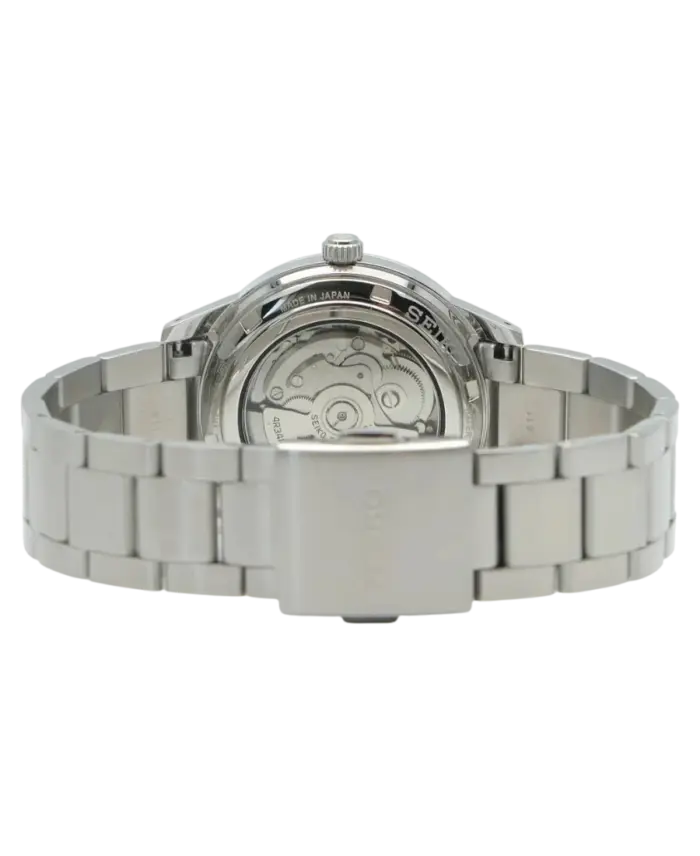SEIKO Presage Automatisk Blå/Stål 40.8 mm — SEIKO Presage Automatisk Herrklocka — Blå urtavla och Silver armband — 5 ATM (50 meter) — Glas: Repskyddat safirglas — Boett: Borstat/polerat rostfritt stål