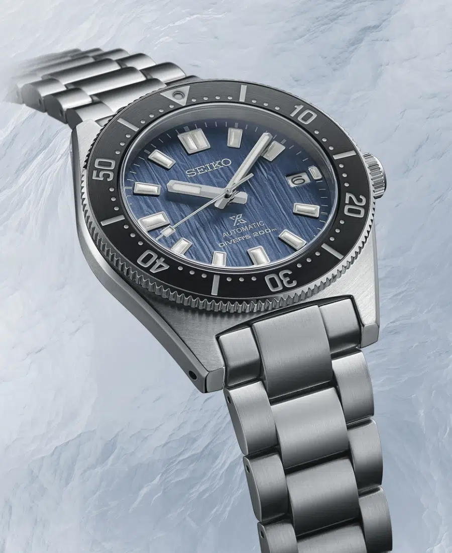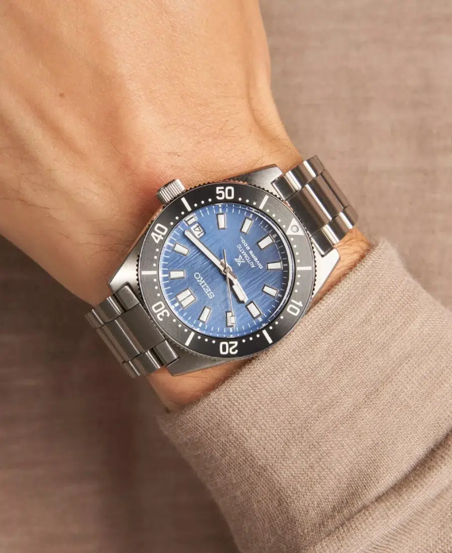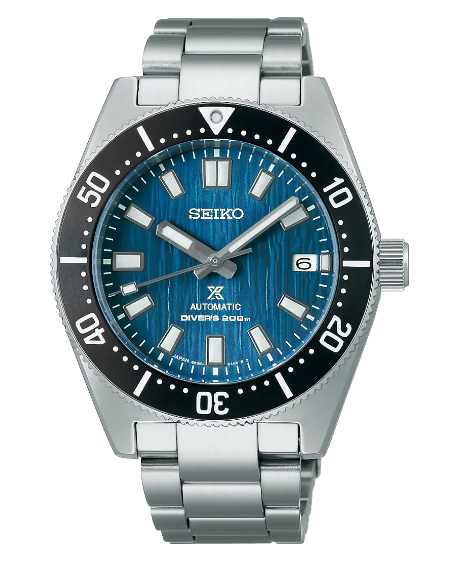 Seiko Prospex Automatic Diver herrklocka i blå urtavla med automatiskt urverk, 40.5 mm boett i stål, safirglas, stålarmband, 20 ATM vattenskydd, skruvkrona och datumvisning.