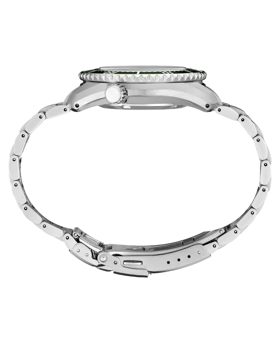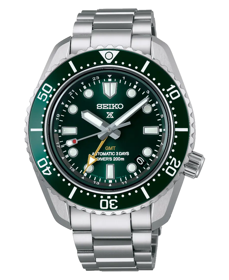 Seiko Prospex Automatic GMT Diver herrklocka i grön urtavla med automatiskt urverk, 42 mm boett i stål, safirglas, stålarmband, 20 ATM vattenskydd, GMT-funktion och datumvisning.