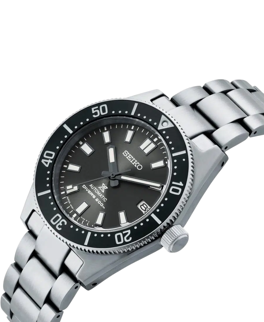 Seiko Prospex Automatic Diver herrklocka i svart urtavla med automatiskt urverk, 40 mm boett i stål, safirglas, stålarmband, 20 ATM vattenskydd och datumvisning.