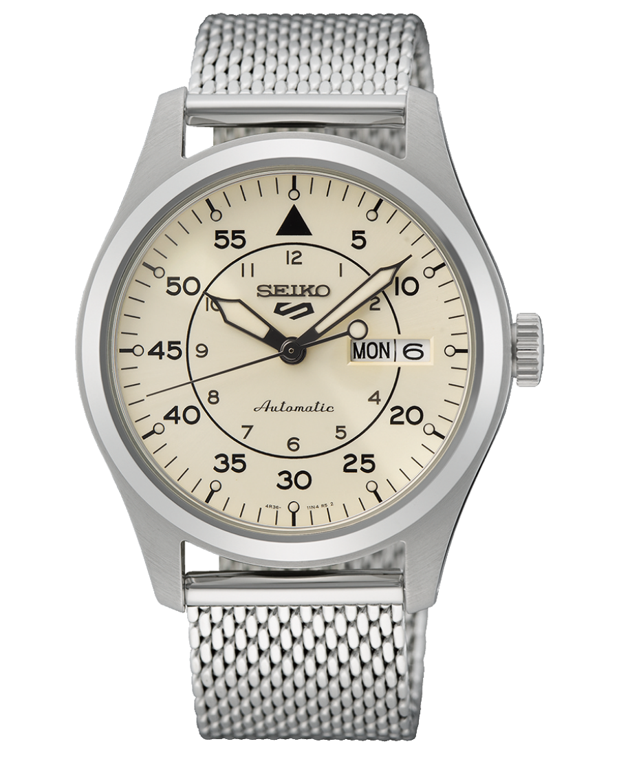 Seiko SRPH21K1 är en klassisk och elegant automatisk klocka med creamfärgad urtavla och stålsarmband, perfekt för både casual och formell stil