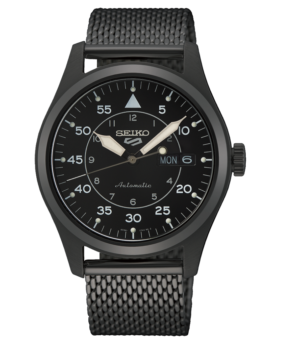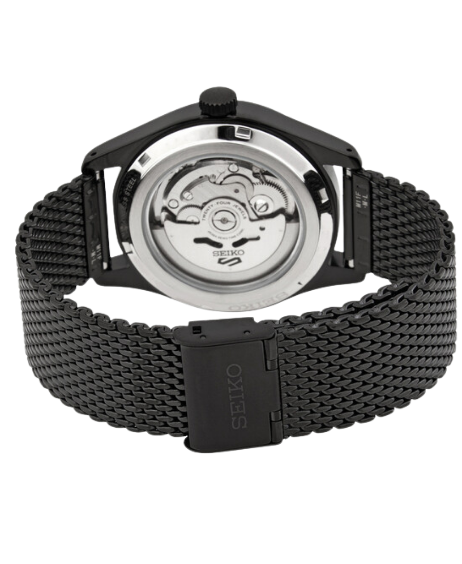 Seiko SRPH25K1 är en sportig och klassisk automatisk klocka med svart urtavla och svart Milanese‑armband, perfekt för både casual och sportig stil.