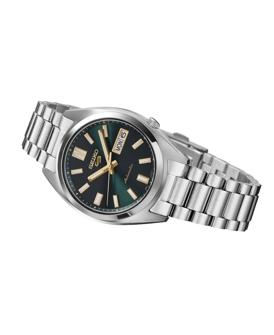 Seiko 5 Sports SRPL57 är en modern tolkning av den klassiska SNXS-serien, med en kompakt och elegant design som passar både vardag och formella tillfällen. Den gröna sunray-urtavlan med gulddetaljer ger en exklusiv och vintage-inspirerad känsla.