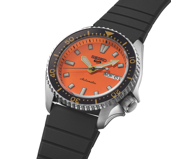 Seiko 5 Sports SRPL89 är en sportig och iögonfallande automatisk klocka med en stark orange urtavla och svart silikonarmband, designad för dig som vill sticka ut med stil. Den robusta boetten i rostfritt stål kombineras med Seikos pålitliga automatiska urverk, vilket gör den perfekt för både vardag och aktiva tillfällen.