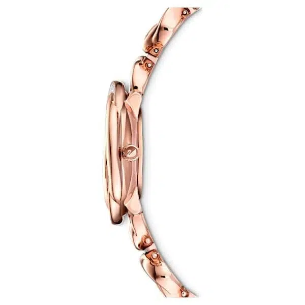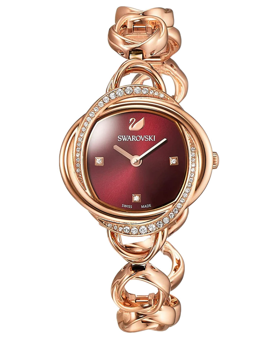 Swarovski 5552783 är en elegant och feminin damklocka med röd sunray‑urtavla och roséguldfärgat stålarmband, dekorerad med skimrande kristaller inspirerade av blomdesign för en romantisk och lyxig look.