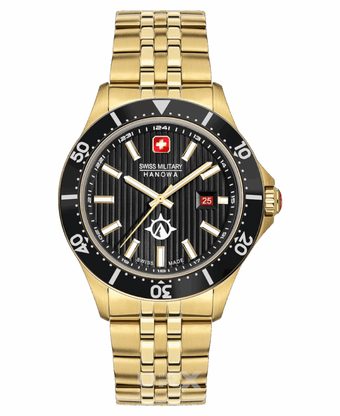 Flaggskeppet X är schweizisk precision och elegans omdefinierad. Inkapslad i glänsande rostfritt stål med en boettdiameter på 42 mm, betyder denna kvartsklocka affärer. En reptålig safirglas skyddar den djärva svarta urtavlan, medan ett guldarmband i rostfritt stål ger en tidlös finish. Vattentät upp till 100 meter, Flagship X följer dig från styrelserummet till stranden.