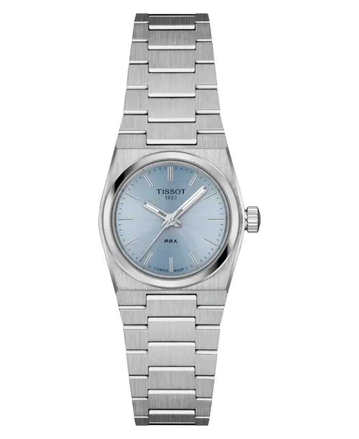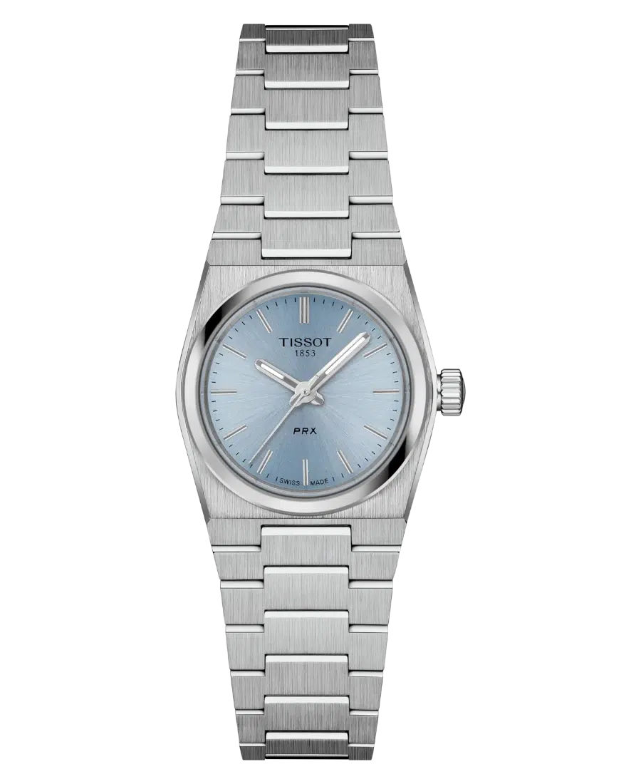 Tissot PRX 25mm är en elegant och modern damklocka med ikonisk retrodesign inspirerad av originalet från 1978. Klockan har en kompakt tonneauformad boett i 316L rostfritt stål, integrerad stållänk, blå urtavla med självlysande index och reptåligt safirglas med antireflexbehandling. Med schweiziskt kvartsurverk med EOL-funktion, datumvisning och 10 ATM vattenskydd är PRX 25 mm ett perfekt val för både vardag och dressade tillfällen.