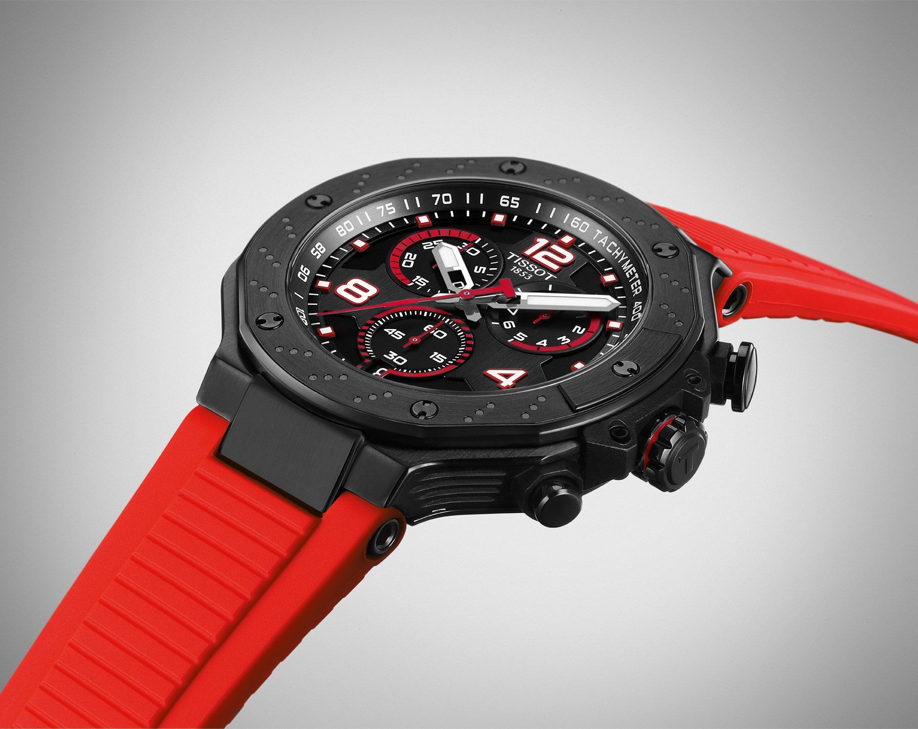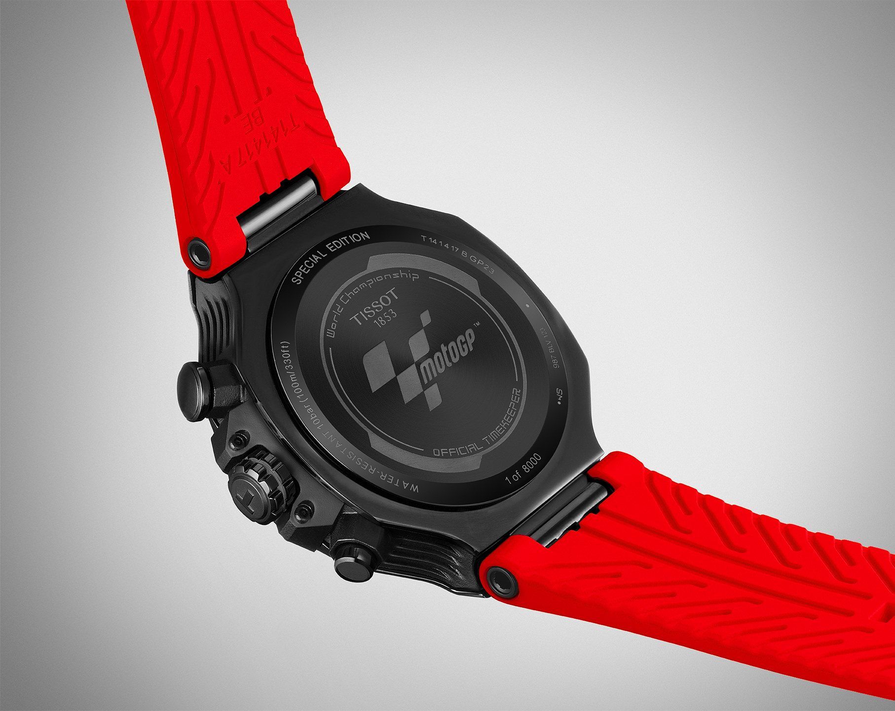 Tissot T-Race MotoGP™ 2023 Limited Edition är en sportig och exklusiv kronograf inspirerad av MotoGP med svart urtavla och detaljer i rött, designad för racing-entusiaster med schweizisk precision.